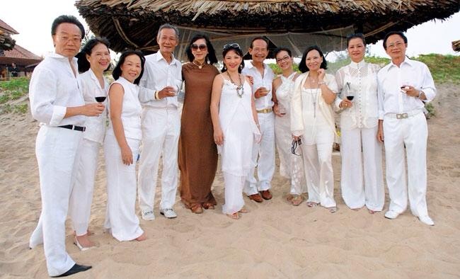 Bà Dao Ánh (áo nâu) chụp ảnh kỷ niệm cùng gia đình Trịnh Công Sơn trong lần gần nhất bà về thăm Việt Nam - Ảnh: Gia đình Trịnh Công Sơn cung cấp