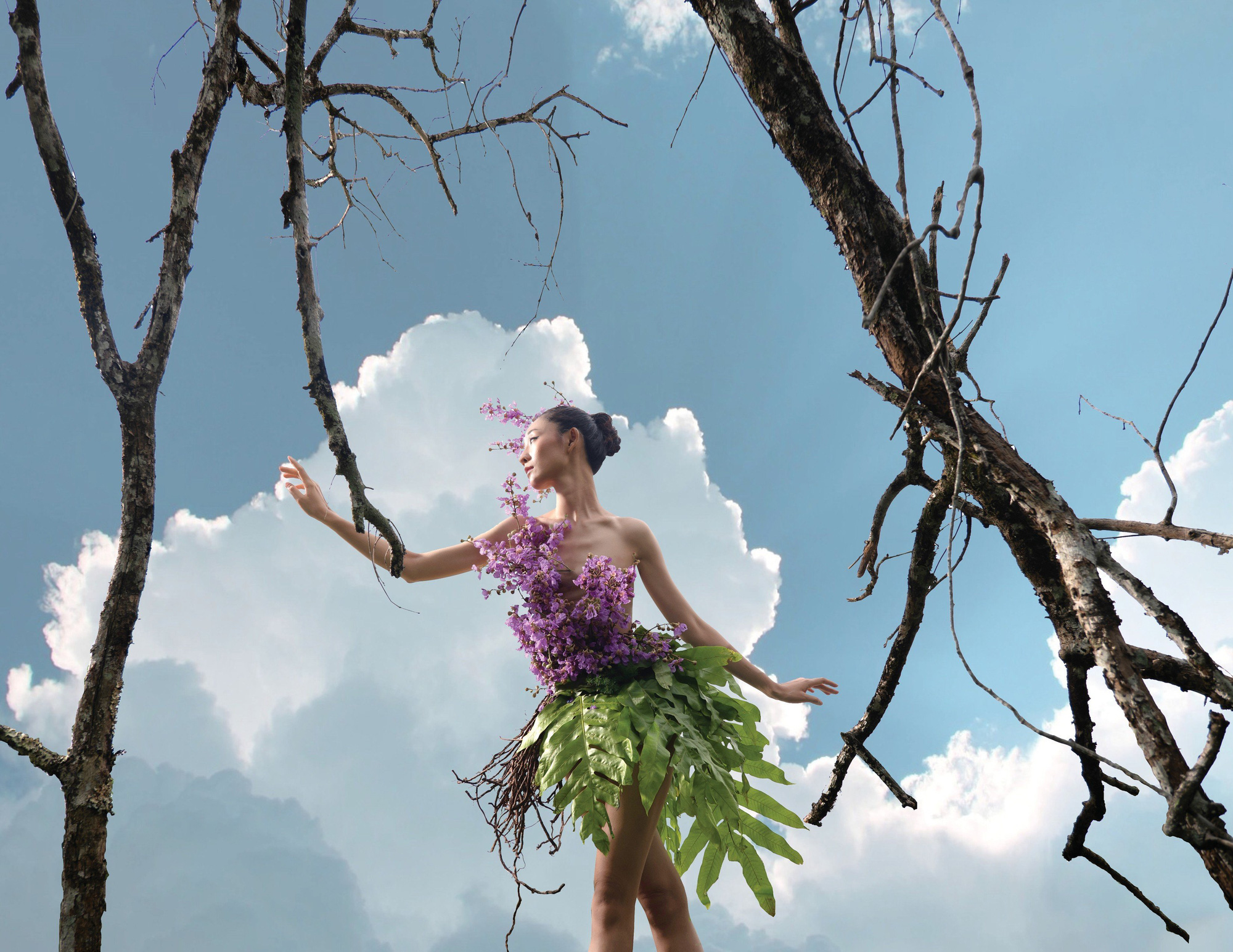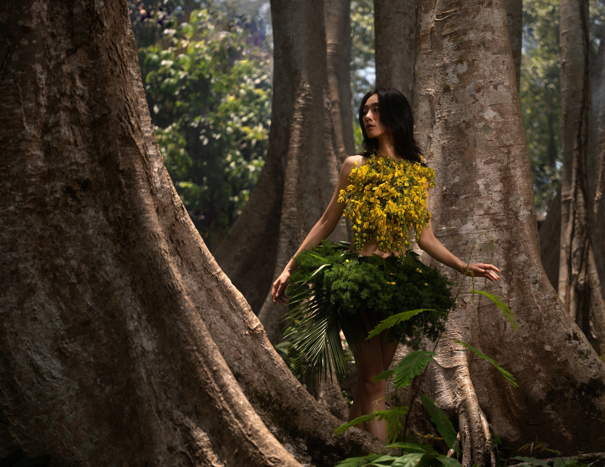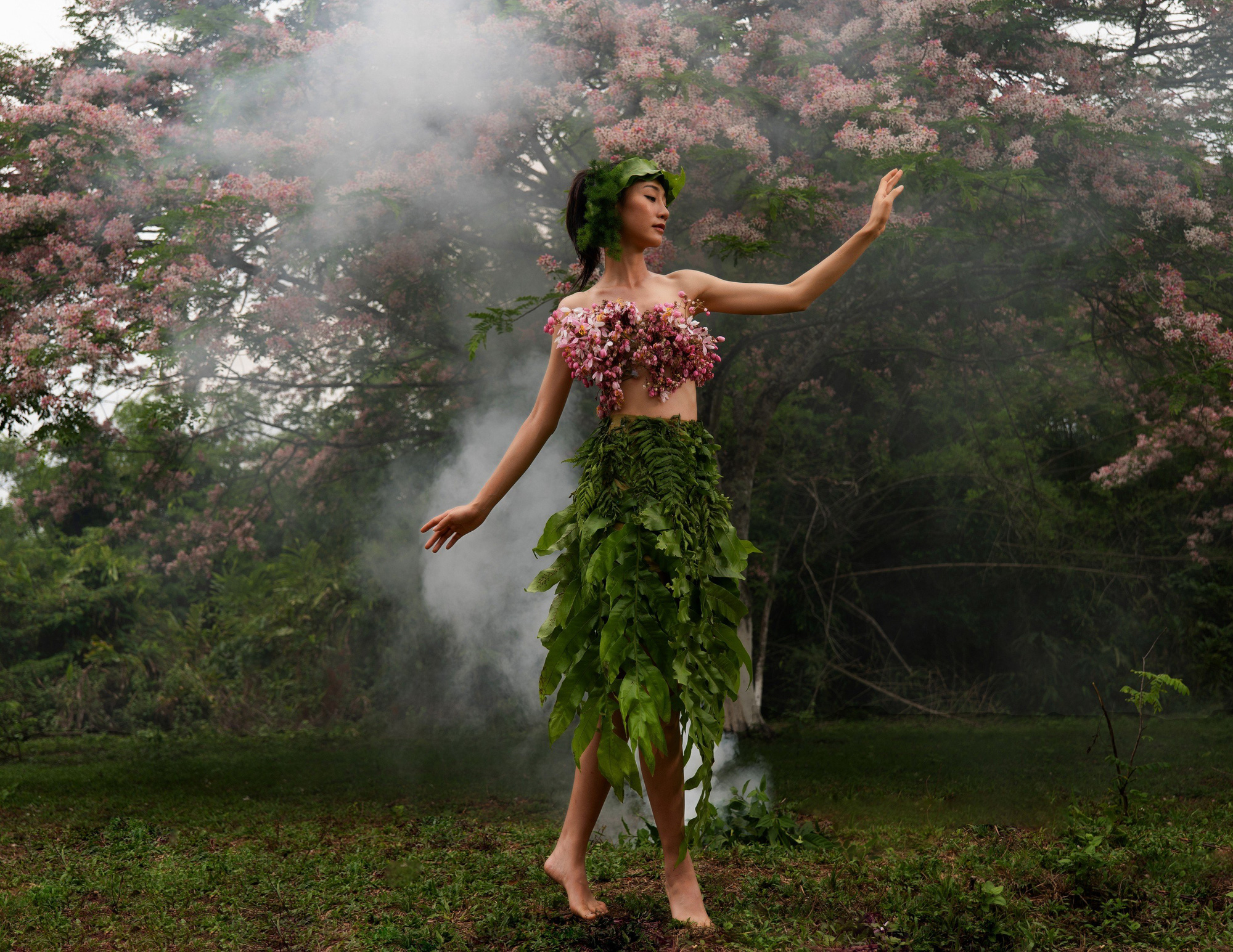 Minh Hạnh thiết kế váy bằng hoa, lá từ Vườn quốc gia Cát Tiên 2 (*)