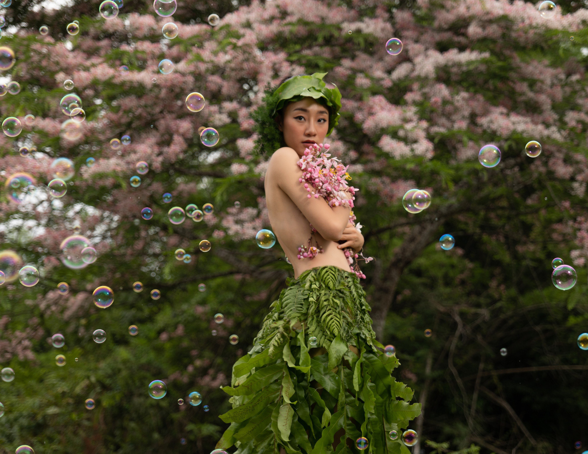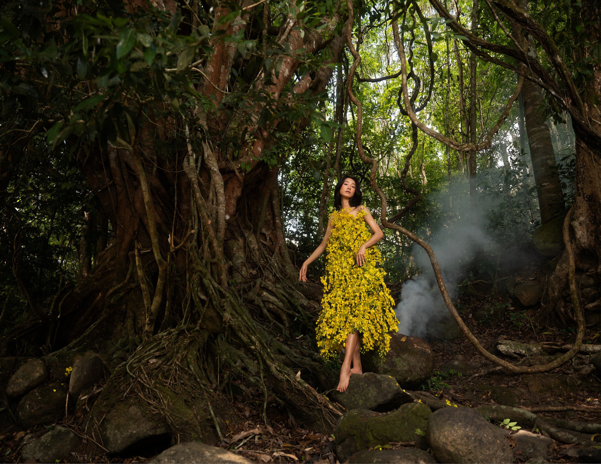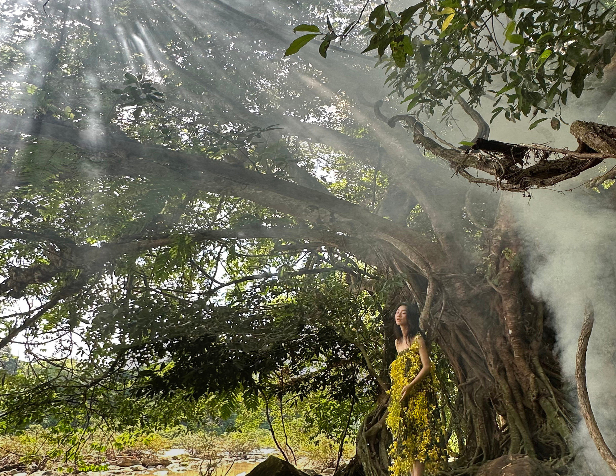 Minh Hạnh thiết kế váy bằng hoa, lá từ Vườn quốc gia Cát Tiên 2 (*)